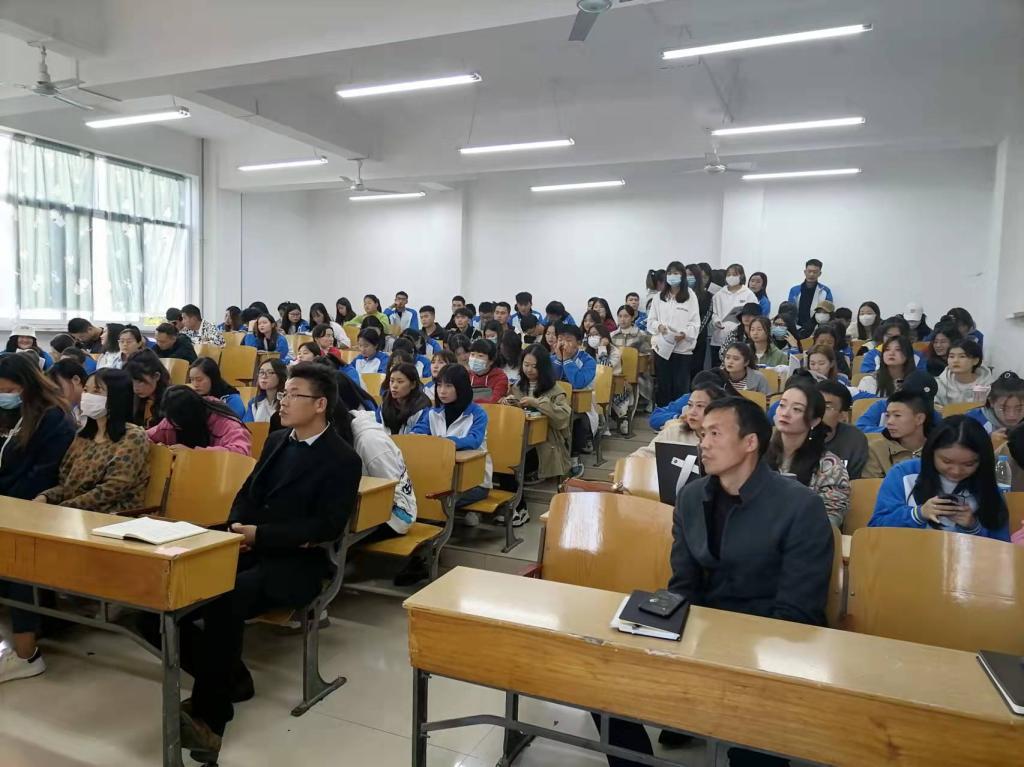 2021年10月18日太阳集团tyc4633在宝福路校区为2022届毕业生举行毕业指导暨动员大会。经管与艺术公司党支部书记孟发军,经理杜海军,院办主任李豪斌,就业处校企合作科王博老师、继续教育中心王仲科老师、太阳集团tyc4633各系主任及任课教师参加大会。