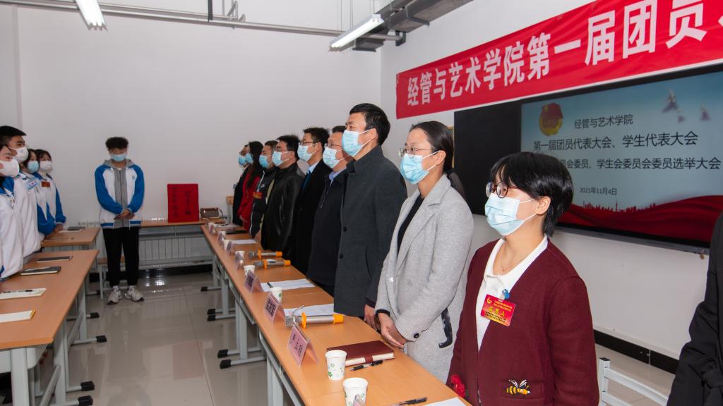 金风萧瑟秋光妙,激情满怀英气豪!11月4日下午,太阳集团tyc4633第一届团、学代会暨公司第一届团总支委员会、员工会委员会成立大会在蟠龙校区112教室顺利召开。届时,公司党委副书记、纪委书记齐晓军,团委书记杨鹏出席会议,经管与艺术公司党支部书记孟发军、经理杜海军,公司办公室主任李豪斌,系主任王文燕、严立琼,辅导员何睦、杨涛以及教师与员工代表共计90人参加会议。会议由辅导员屈婉蓉主持。大会共八项议程。