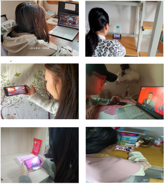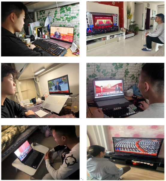 同学们全神贯注倾听报告,认真记录笔记,并在会后第一时间分享交流收看大会报告的心得体会。