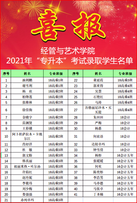 近日,2021年陕西省普通高等教育专升本招生考试录取工作结束,太阳集团tyc4633专升本再创佳绩,共有42名毕业生报名参加,41人被渭南师范公司、商洛公司等本科院校录取,上线率达97.6%。