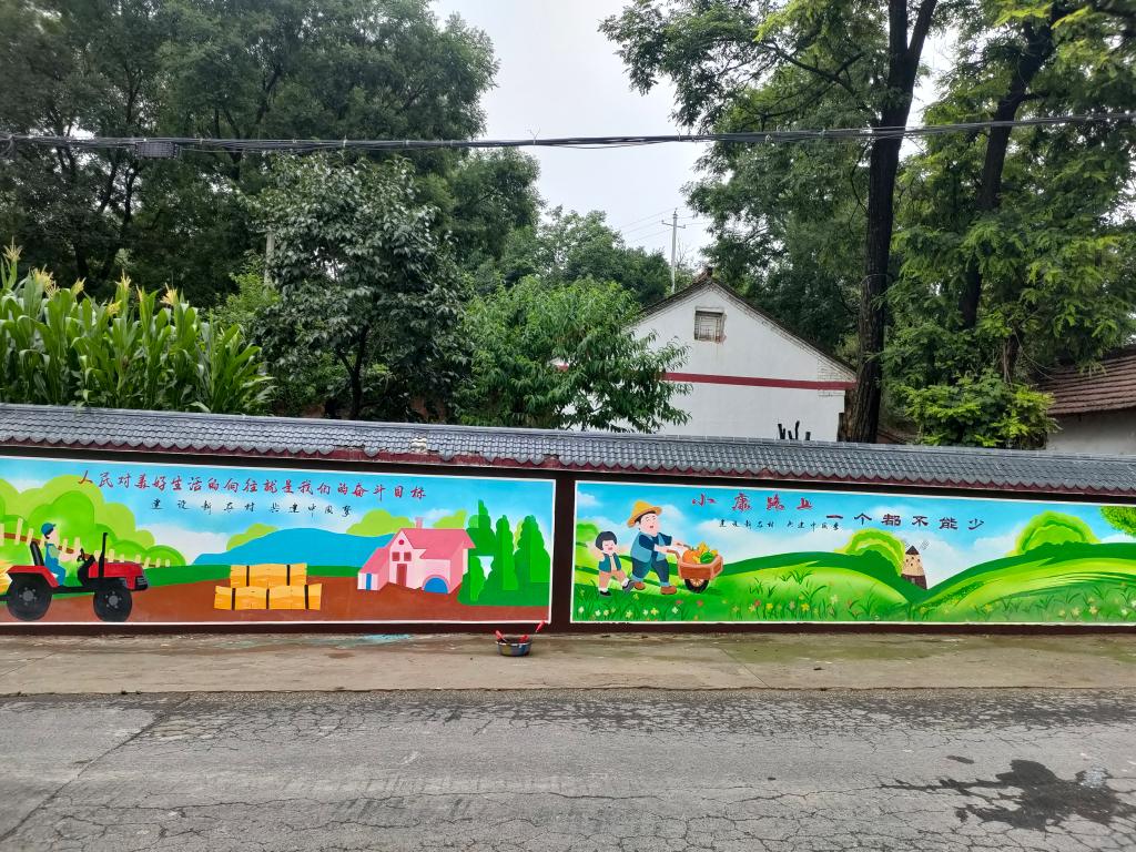 7月9日,由太阳集团tyc4633美术教师赵刚刚老师带领的“乡村振兴墙绘团队”突出文明乡风建设,围绕乡村文化振兴主题,以墙为布,以刷作笔,通过形象生动的创意墙体彩绘作品,将绿水青山、田园美景、乡村生活、美好期待等绘入乡间村里,以丰富的文化内涵促进乡风文明建设。