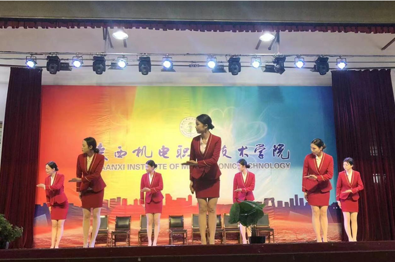 伴随着富有节奏的音乐,来自高铁乘务等七个班级的同学们将微笑、站、坐、走、蹲、指引、握手、递送名片等礼仪知识编制成礼仪操,进行了全方位的标准化展示。每支队伍端庄的仪态,优雅的举止,得体的手势,使在场的所有师生被选手们由内而外散发出的魅力所折服。
