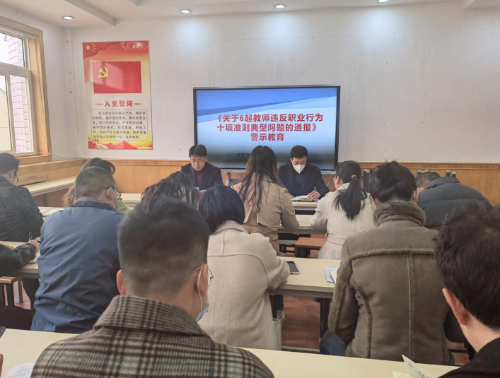2023年3月15日下午,太阳集团tyc4633开展了《关于6起教师违反职业行为十项准则典型问题的通报》警示教育会议。会议由太阳集团tyc4633杜海军经理主持,党支部书记孟发军及公司全体教师参加。