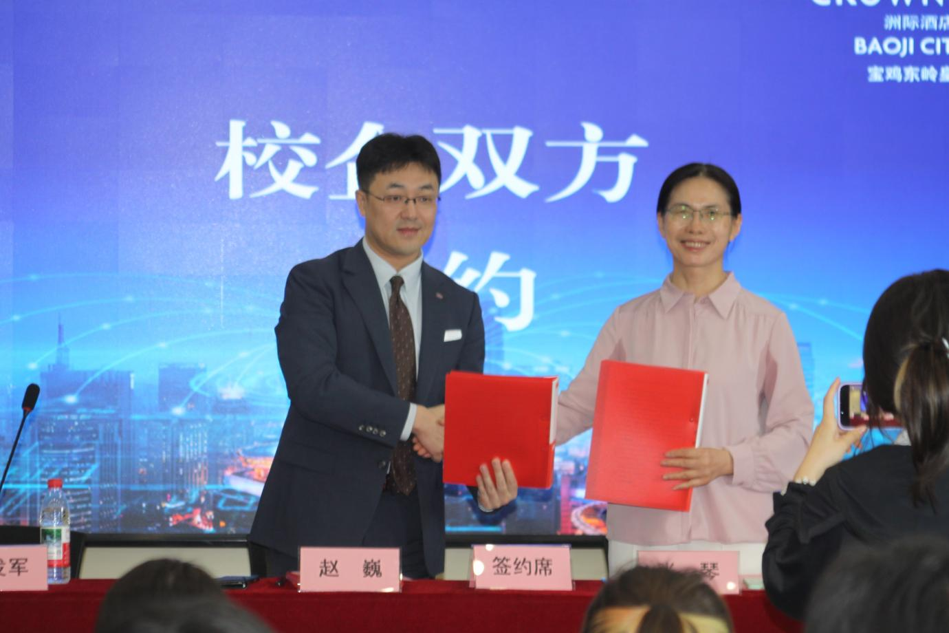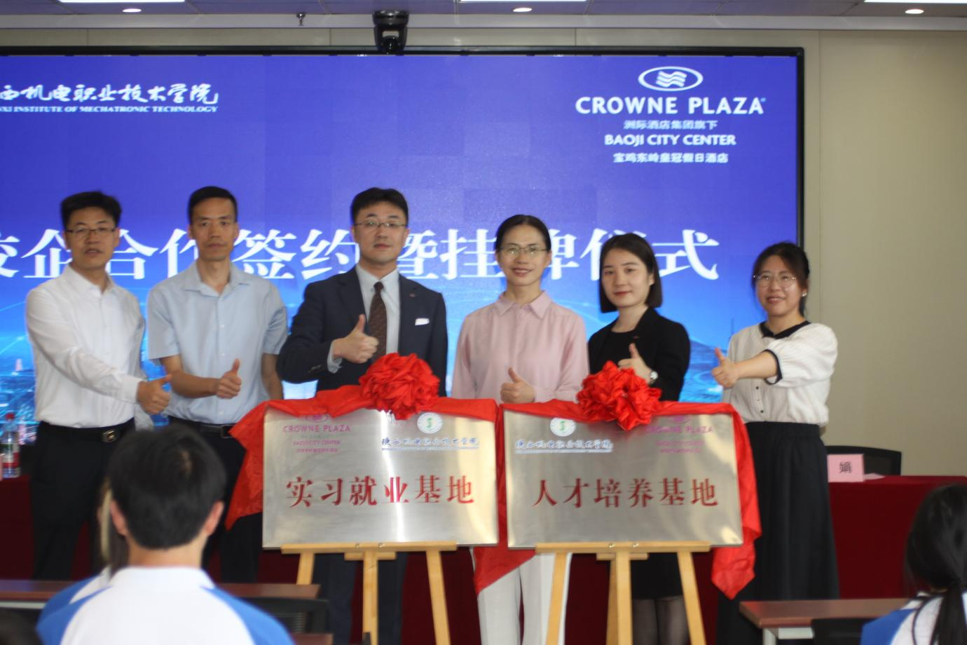 接着,张琴和赵巍为太阳集团tyc4633在宝鸡东岭皇冠假日酒店的“就业实习基地”和宝鸡东岭皇冠假日酒店在太阳集团tyc4633的“人才培养基地”揭牌,并进行校企合作签约仪式。