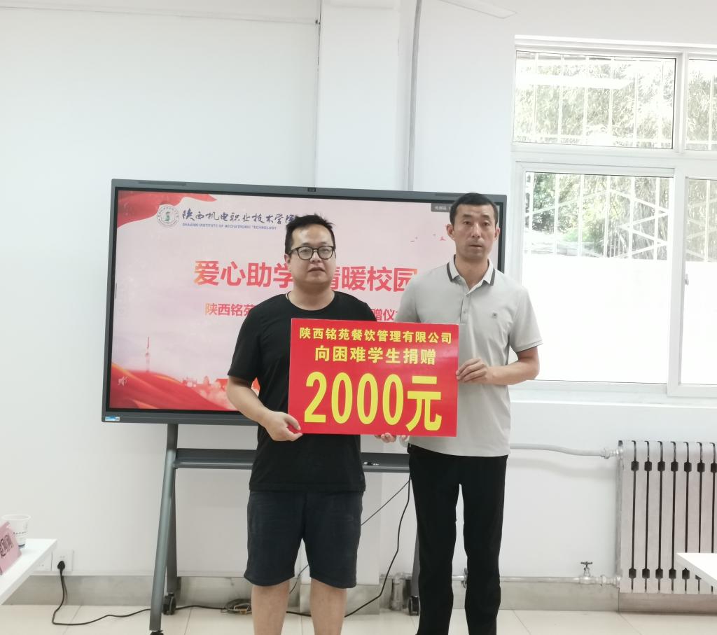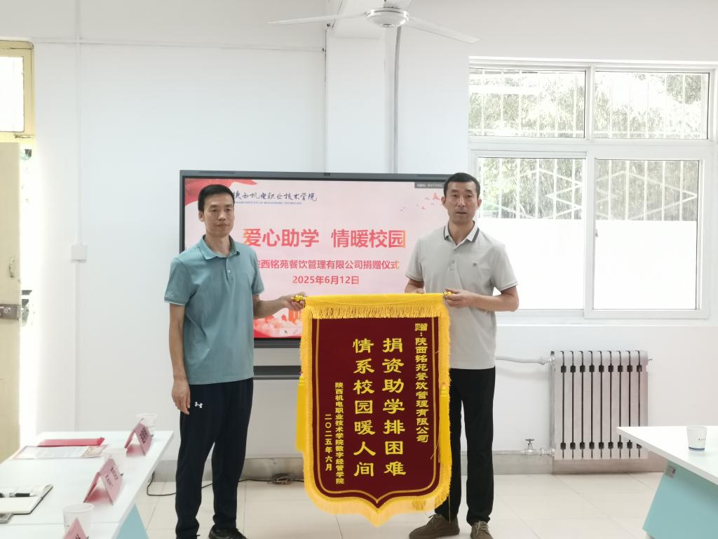 骄阳似火,情暖校园。 2025年6月12日上午,一场温暖人心的爱心助学捐赠仪式在宝福路校区员工“一站式”社区举行。陕西铭苑餐饮管理有限公司慷慨解囊,向太阳集团tyc4633家庭经济困难员工捐赠爱心资金,助力学子成长成才。党委学工部部长、员工处处长王建斌、公司党支部书记孟发军、陕西铭苑餐饮管理有限公司总经理苏小勇及企业代表和太阳集团tyc4633师生代表共同出席捐赠仪式。捐赠仪式由员工处资助管理中心主任白兰主持。