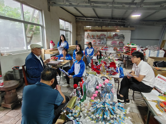 在陇州社火头帽制作技艺传习所,同学们还访谈了陇州社火省级传承人、陇州社火总导演宋怡儒前辈。传承人宋老师向师生们介绍了陇州社火的起源、表现形式、亮点特色、耍社火的主要流程等,结合自己五十多年装社火、耍社火的经历以及多年担任陇州社火总导演的经验,向师生们讲述了他与社火的不解之缘和精彩故事,并对同学们传承和创新社火文化、非遗文化提出了建议和展望。