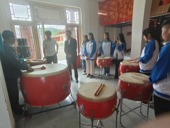 第三站,实践团队到达陇州社火传习所,参观了社火文化展室,社火艺人向师生介绍了陇州社火的鼓点,并手把手教授。同学们跟着老艺人饶有兴趣地敲锣打鼓,现场气氛高涨。伴随着古朴浑厚、气势磅礴的鼓点,在场师生再一次感受到了陇州社火文化的厚重,经过半个多小时的体验,催人奋进的鼓点使同学们从火文化的韵律中汲取了奋进的力量。