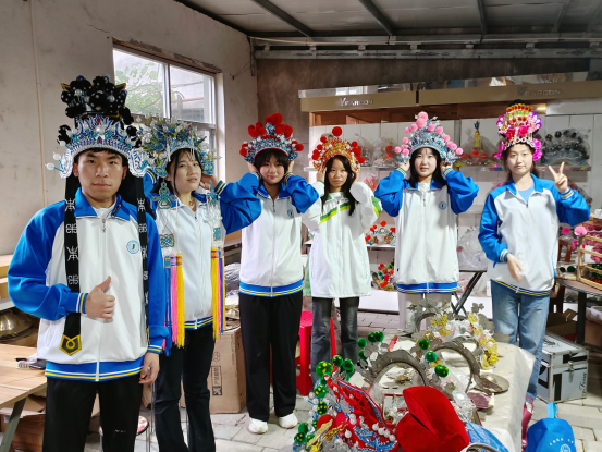 第五站,实践团队到达陇州社火头帽制作技艺传习所。市级传承人张平玉向师生们介绍了陇州社火头帽制作工序和技艺。并跟着传承人现场组装了自己喜爱的社火角色头帽。同学们看着自己组装的社火头帽神采飞扬,不由让自己眼前一亮,情不自禁的戴在自己头上自拍留念。此站的参观和体验让同学们又一次领略了匠心之美、非遗之美、文化之美。