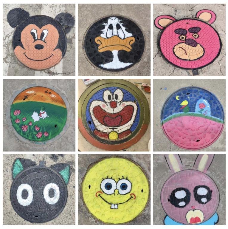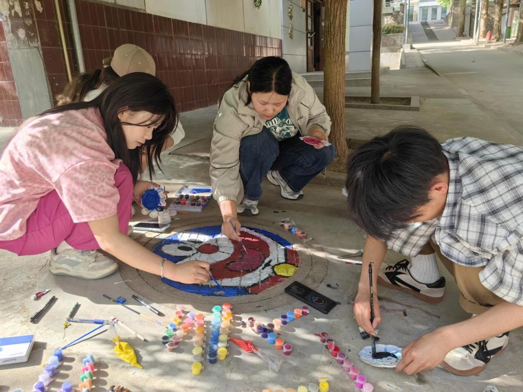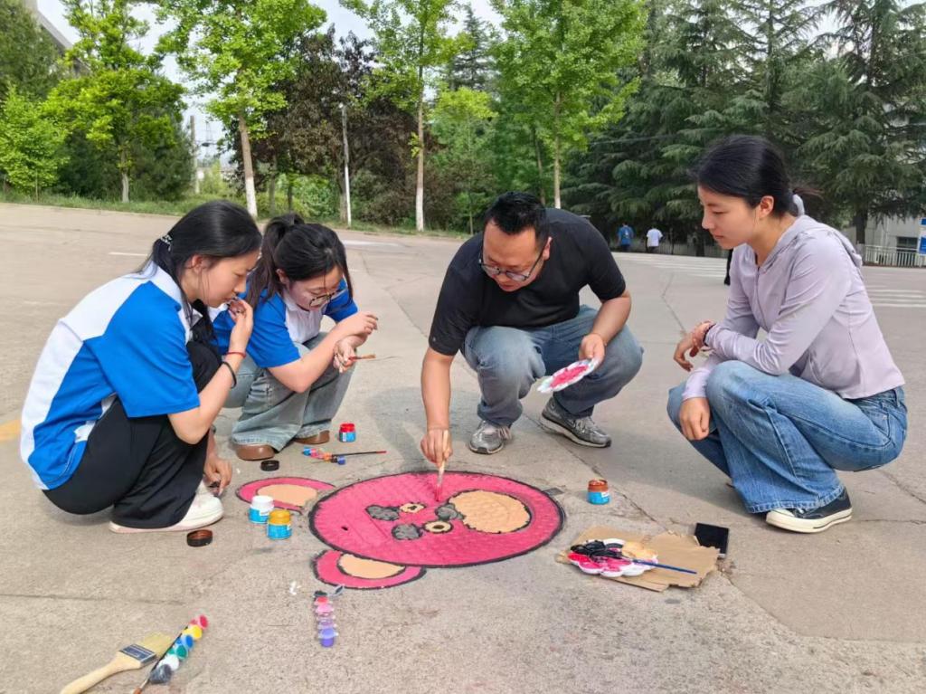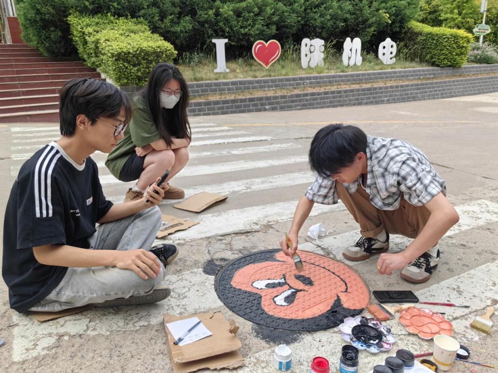 活动期间,校园内处处可见员工们忙碌的身影。在专业教师的指导下,同学们分组协作,从图案设计、色彩搭配到实际绘制,每个环节都精心打磨。他们以自然风景、卡通形象、校园文化符号为灵感,用丙烯颜料为冰冷的井盖赋予生机。