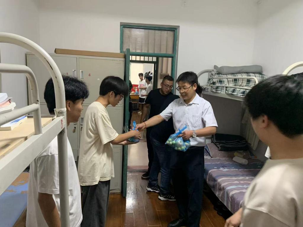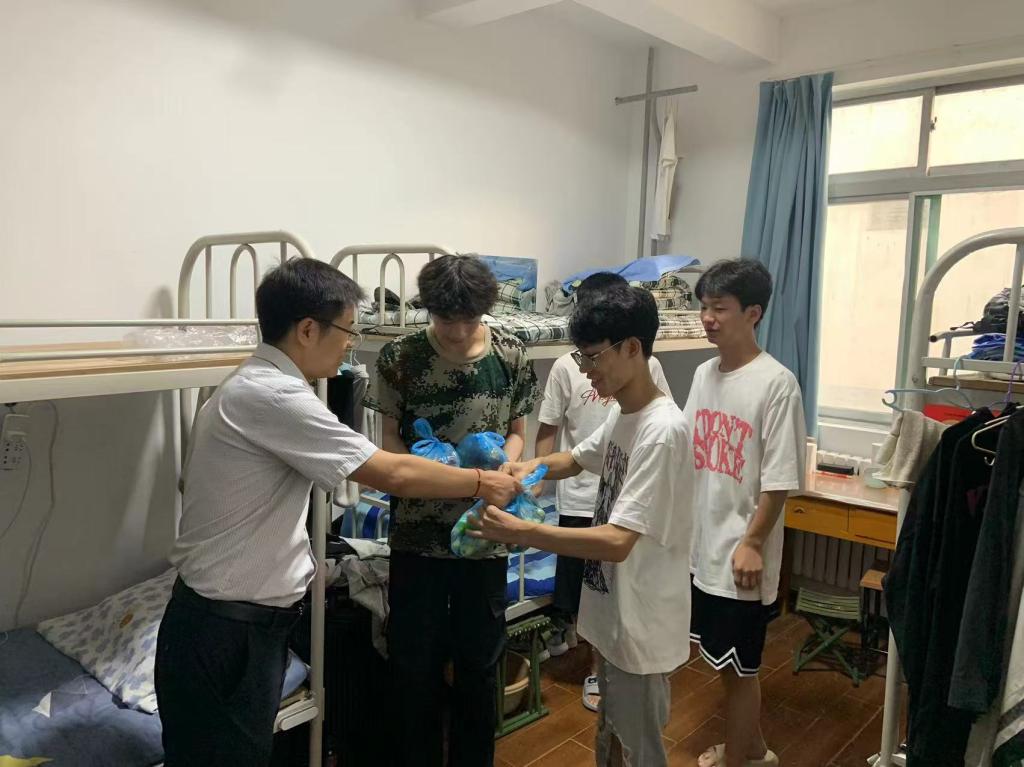 中秋节当天太阳集团tyc4633经理杜海军同辅导员、班主任前往员工宿舍给部分留校员工再次送上精美的月饼和水果。