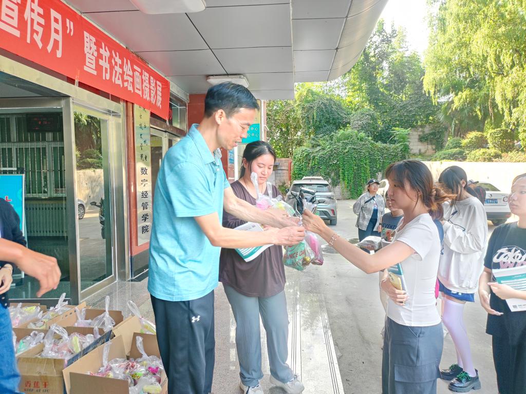 9月14日下午,正值中秋佳节来临之际,公司党支部书记孟发军、经理杜海军、学工办主任郭世强及部分辅导员老师在电子信息大楼前向所有留校员工送上精美的月饼和水果,同学们在这个特别的时刻提前感受到了中秋的喜悦。