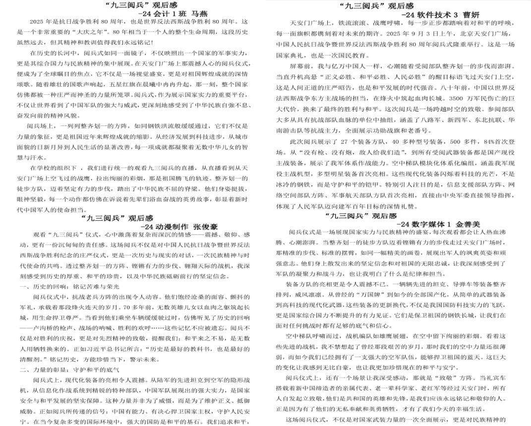 此次活动,有助于引导师生深刻理解伟大抗战精神的历史意义和时代价值,进一步增强了民族自豪感、国家荣誉感,激励着所有师生在今后的工作与学习中,以更加饱满的热情和昂扬的斗志,积极为公司发展与国家繁荣贡献自己的力量。
