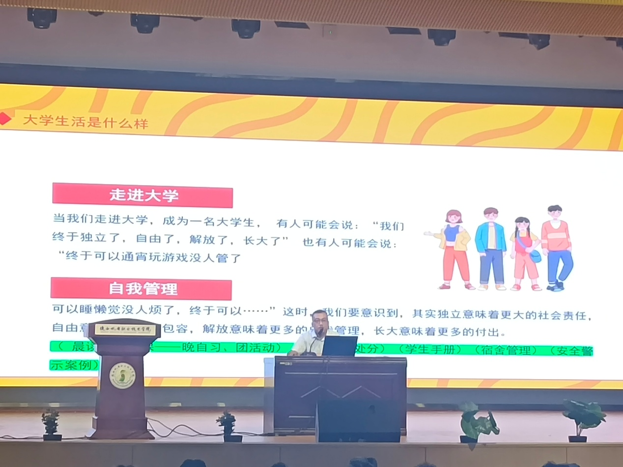 王新祺老师则重点讲解了“宿舍卫生标准和教室卫生标准”,通过图文并茂的方式详细说明了各项卫生要求及评比标准,帮助新生养成良好的生活卫生习惯。