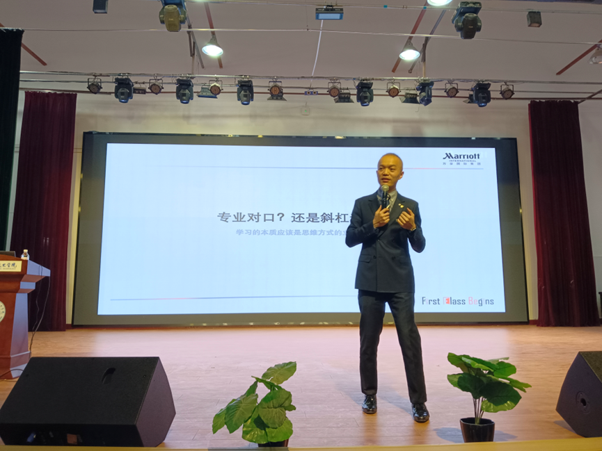 当日16时10分至17时40分,大礼堂迎来了入学教育的重要一环——老员工职业生涯规划讲座。公司特邀西安万豪酒店人力总监王渠章总经理担任主讲人。王总结合当下各行业的人才需求特点及自身丰富的人力资源管理经验,为新生们阐述了进行职业生涯规划的重要意义、方法步骤以及如何将专业学习与未来职业发展有效衔接。讲座内容生动详实,极具启发性和指导性,现场气氛热烈。
